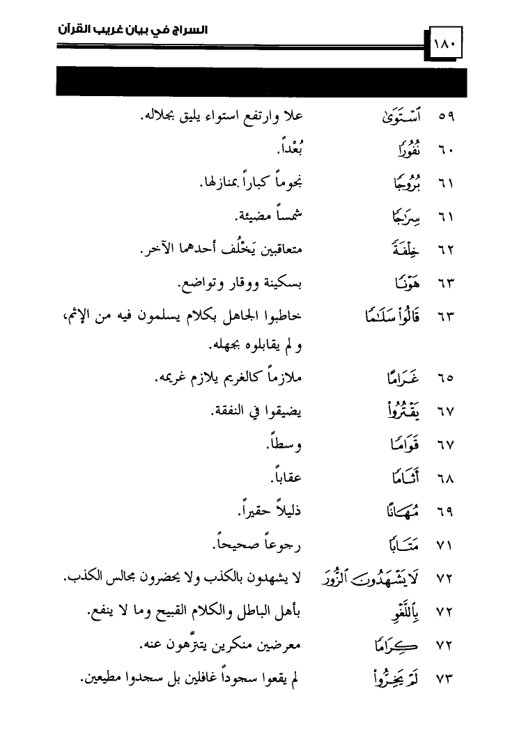 (72) ... {مَرُّوا بِاللَّغْوِ} ... مَرُّوا بِأَهْلِ البَاطِلِ وَالكَلَامِ القَبِيحِ وَمَا لَا يَنْفَعُ.