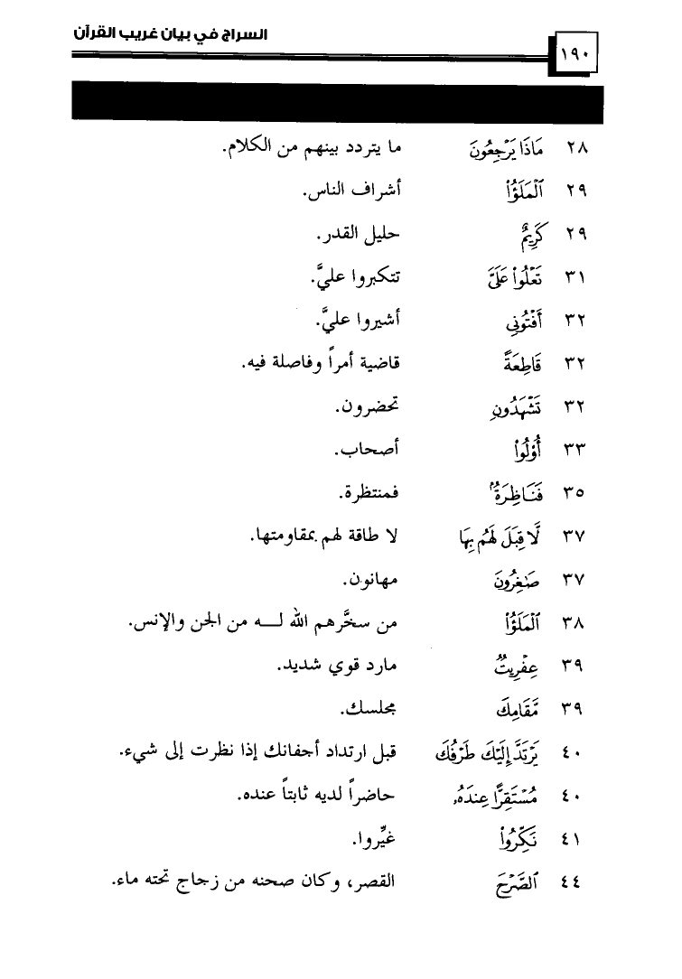 (29) ... {المَلَأُ} ... أَشْرَافُ النَّاسِ.
