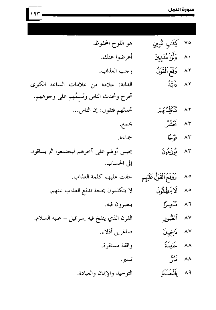(82) ... {تُكَلِّمُهُمْ} ... تُحَدِّثُهُمْ فَتَقُولُ: إِنَّ النَّاسَ ...