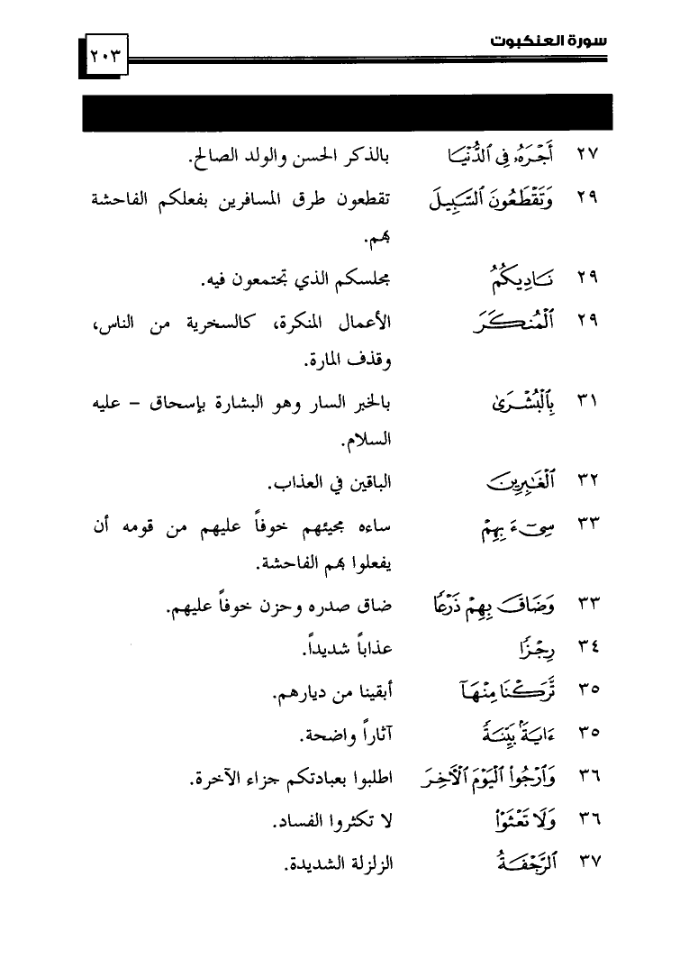 (29) ... {الْمُنكَرَ} ... الأَعْمَالَ المُنْكَرَةَ؛ كَالسُّخْرِيَةِ مِنَ النَّاسِ، وَقَذْفِ المَارَّةِ.