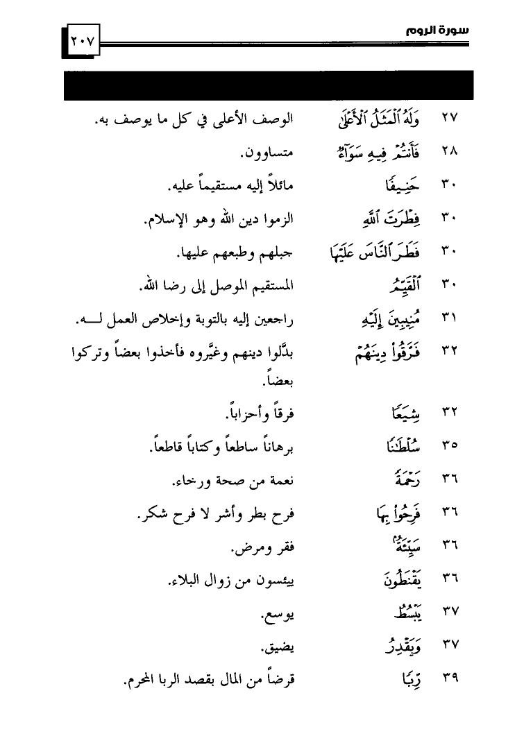 (30) ... {الْقَيِّمُ} ... المُسْتَقِيمُ المُوصِلُ إِلَى رِضَا اللهِ.