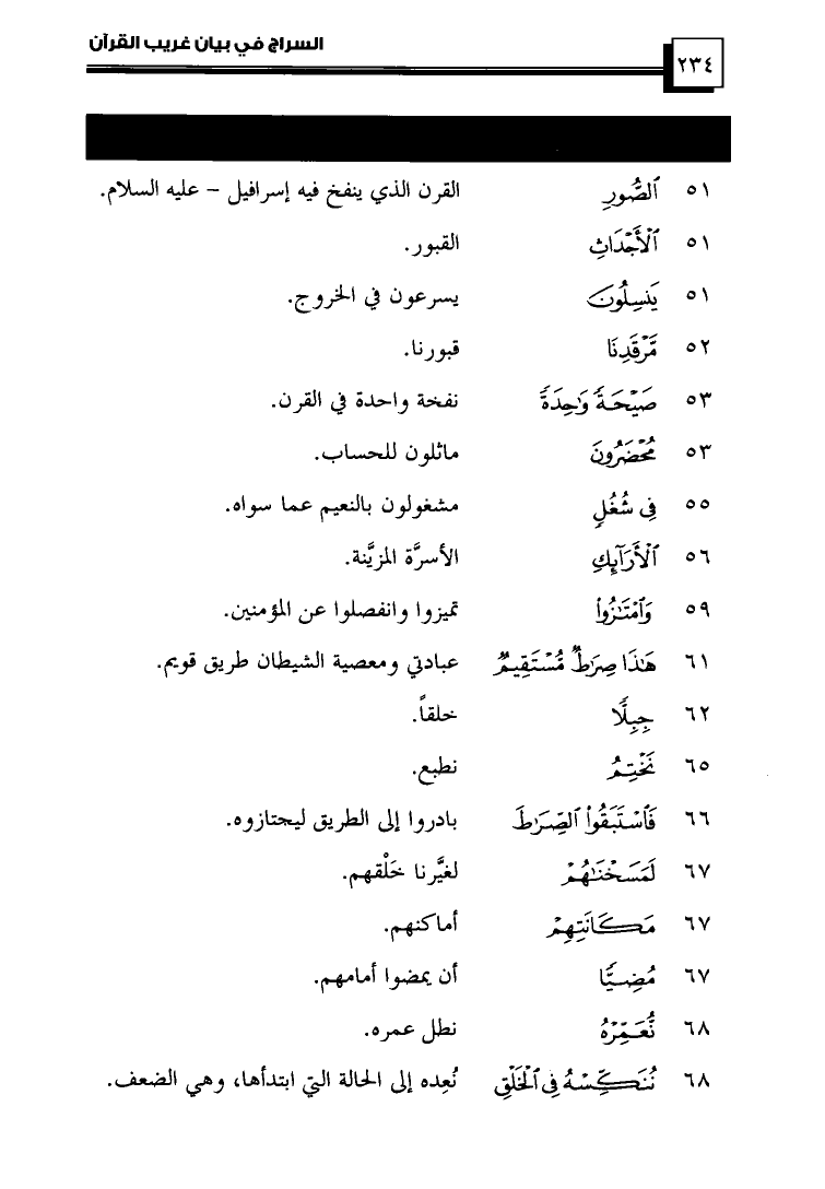 (51) ... {الصُّورِ} ... القَرْنِ الَّذِي يَنْفُخُ فِيهِ إِسْرَافِيلُ - عليه السلام -.