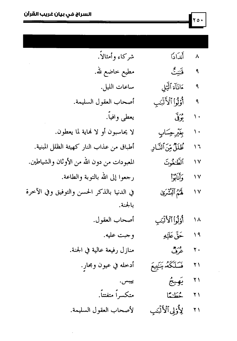 (9) ... {أُوْلُوا الْأَلْبَابِ} ... أَصْحَابُ العُقُولِ السَّدِيدَةِ.