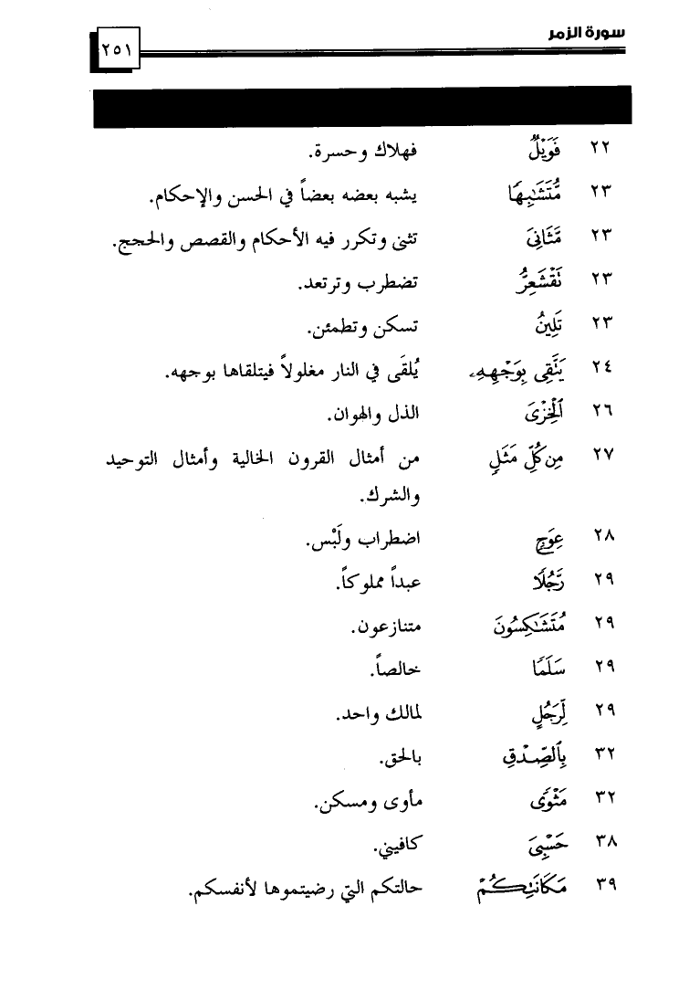 (23) ... {مَّثَانِيَ} ... تُثَنَّى وَتُكَرَّرُ فِيهِ الأَحْكَامُ وَالقِصَصُ وَالحُجَجُ.
