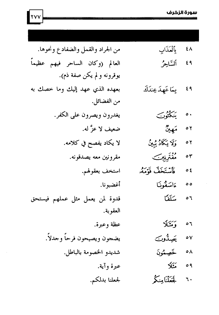 (49) ... {السَّاحِرُ} ... العَالِمُ (وَكَانَ السَّاحِرُ فِيهِمْ عَظِيمًا يُوَقِّرُونَهُ، وَلَمْ يَكُنْ صِفَةَ ذَمٍّ).