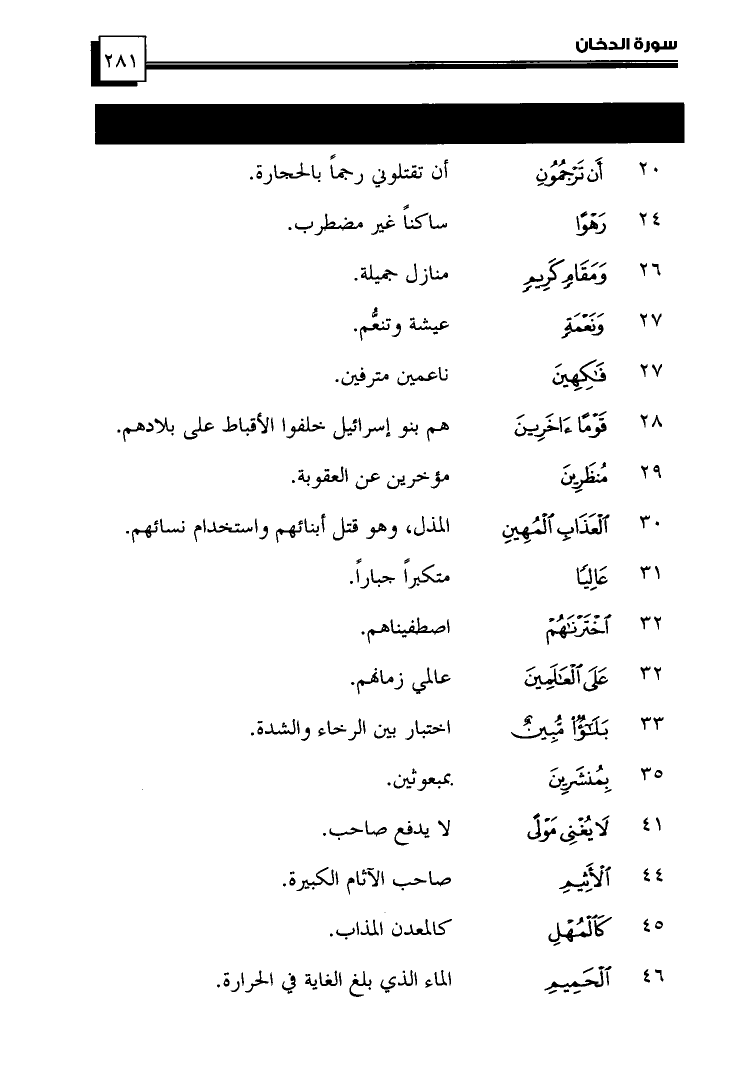 (20) ... {أَن تَرْجُمُونِ} ... أَنْ تَقْتُلُونِي رَجْمًا بِالحِجَارَةِ.