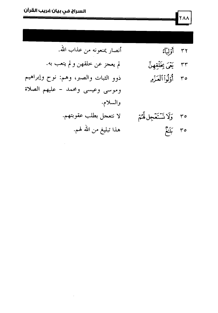 (35) ... {أُوْلُوا الْعَزْمِ} ... ذَوُو الثَّبَاتِ وَالصَّبْرِ؛ وَهُمْ: نُوحٌ، وَإِبْرَاهِيمُ، وَمُوسَى، وَعِيسَى، وَمُحَمَّدٌ؛ عَلَيْهِمُ الصَّلَاةُ وَالسَّلَامُ.
