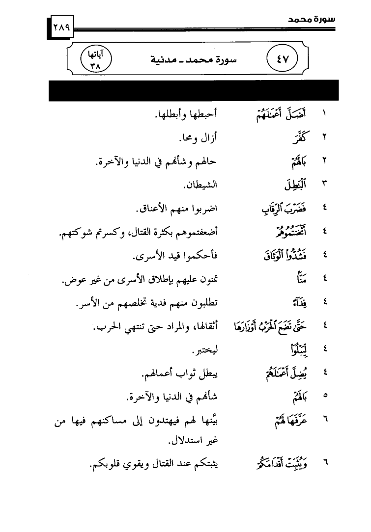 ترتيبها 47 ... سُورَةُ مُحَمَّدٍ ... آياتها 38 مدنية