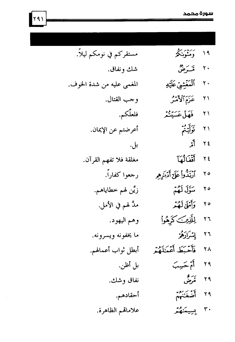 (19) ... {وَمَثْوَاكُمْ} ... مُسْتَقَرَّكُمْ فيِ نَوْمِكُمْ لَيْلًا.