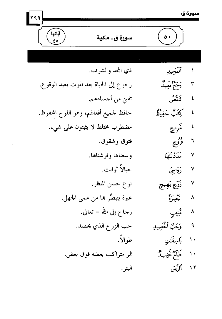 ترتيبها 50 ... سُورَةُ ق ... آياتها 45 ... مكية