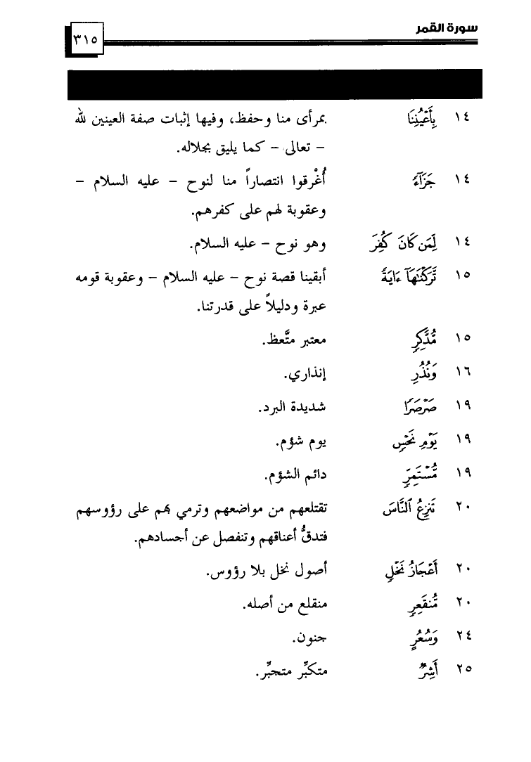 (20) ... {مُّنقَعِرٍ} ... مُنْقَلِعٍ مِنْ أَصْلِهِ.