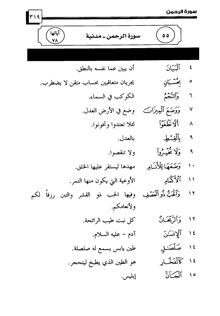 ترتيبها 55 ... سُورَةُ الرَّحْمَنِ ... آياتها 78 مدنية