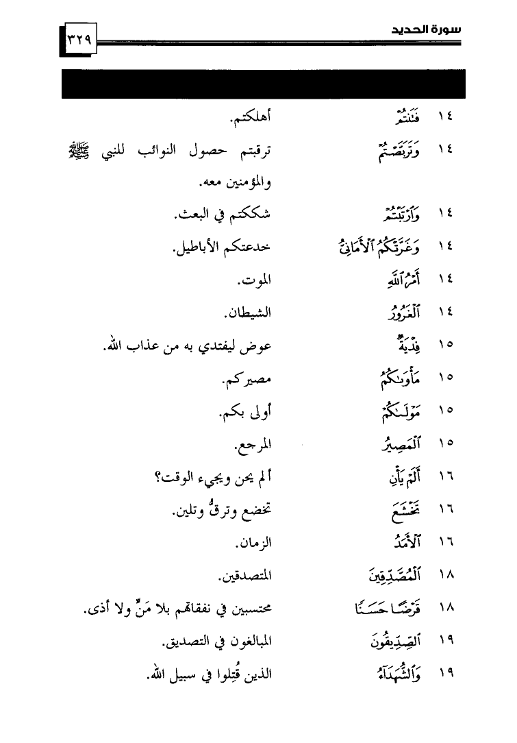 (14) ... {وَغَرَّتْكُمُ الْأَمَانِيُّ} ... خَدَعَتْكُمُ الأَبَاطِيلُ.
