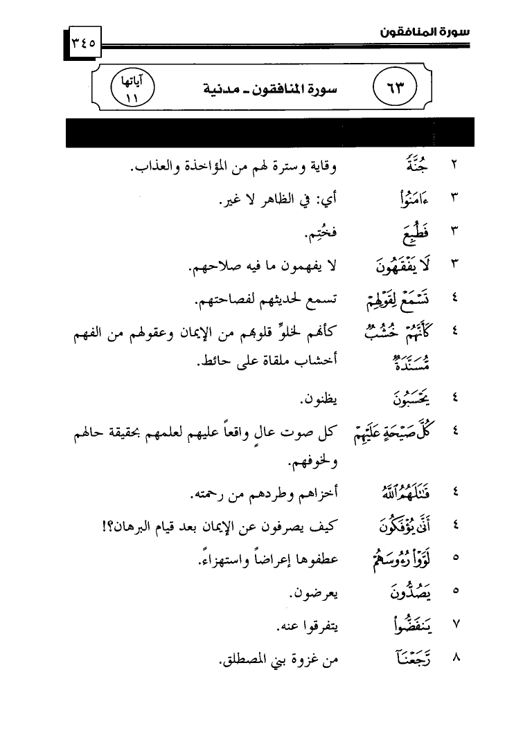 ترتيبها 63 ... سُورَةُ المُنَافِقُونَ ... آياتها 11 مدنية