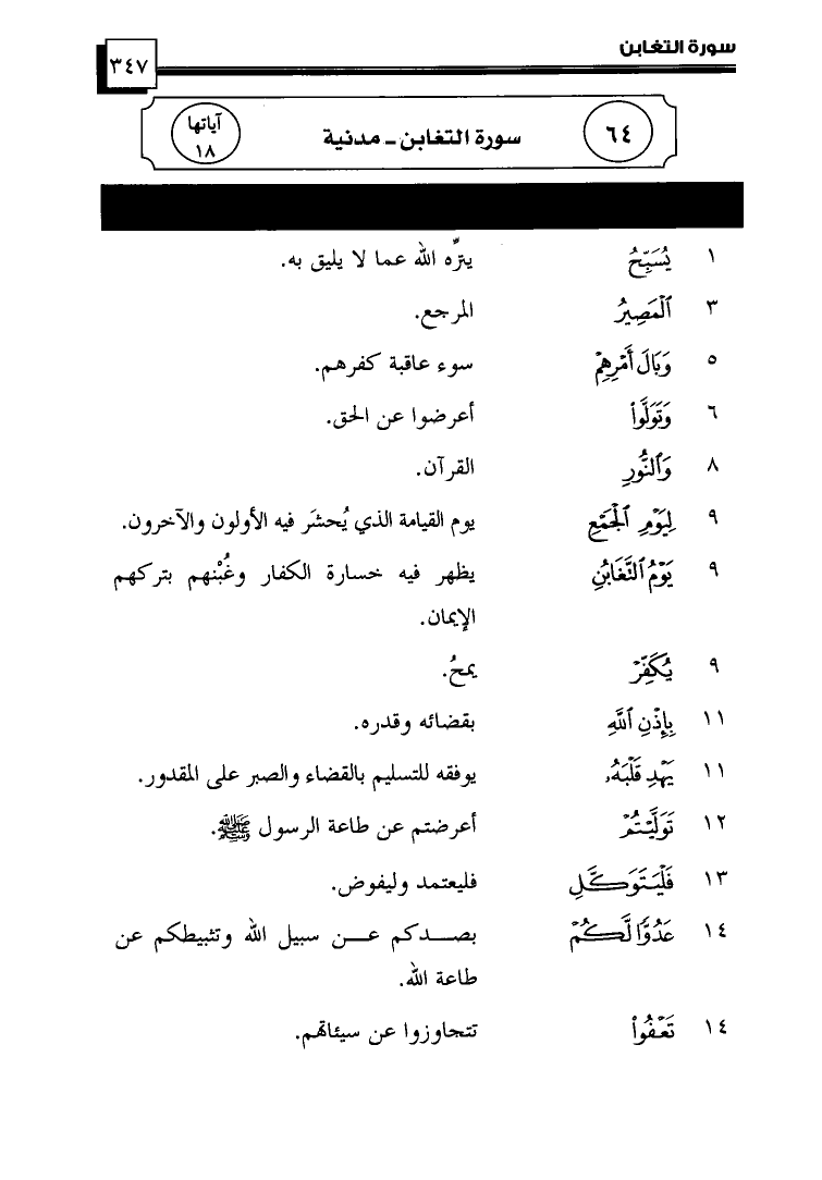 ترتيبها 64 ... سُورَةُ التَّغَابُنِ ... آياتها 18 ... مدنية