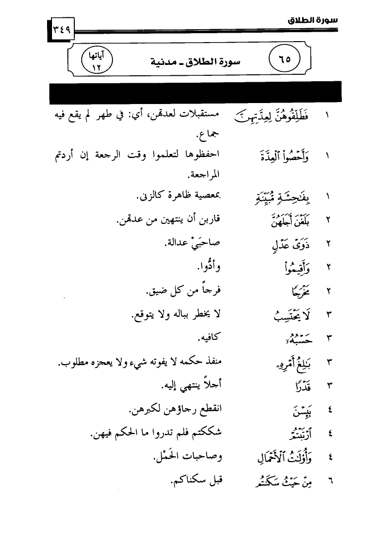 ترتيبها 65 ... سُورَةُ الطَّلَاقِ ... آياتها 12 ... مدنية