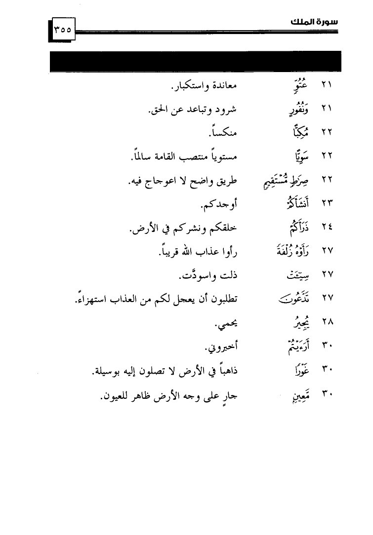 (30) ... {مَّعِينٍ} ... جَارٍ عَلَى وَجْهِ الأَرْضِ، ظَاهِرٍ لِلْعُيُونِ.