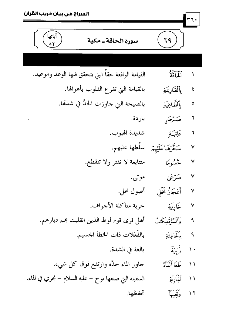 (1) ... {الْحَاقَّةُ} ... القِيَامَةُ الوَاقِعَةُ حَقًّا الَّتِي يَتَحَقَّقُ فِيهَا الوَعْدُ وَالوَعِيدُ.