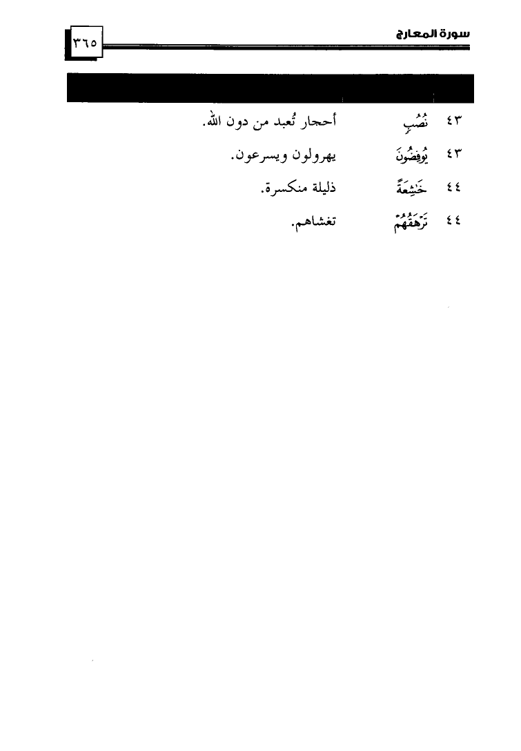 (43) ... {نُصُبٍ} ... أَحْجَارٍ تُعْبَدُ مِنْ دُونِ اللهِ.
