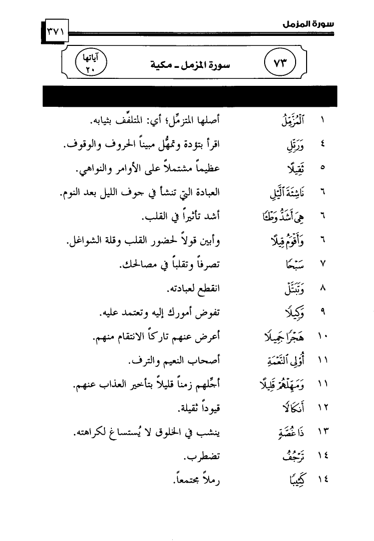 ترتيبها 73 ... سُورَةُ المُزَّمِّلِ ... آياتها 20 ... مكية