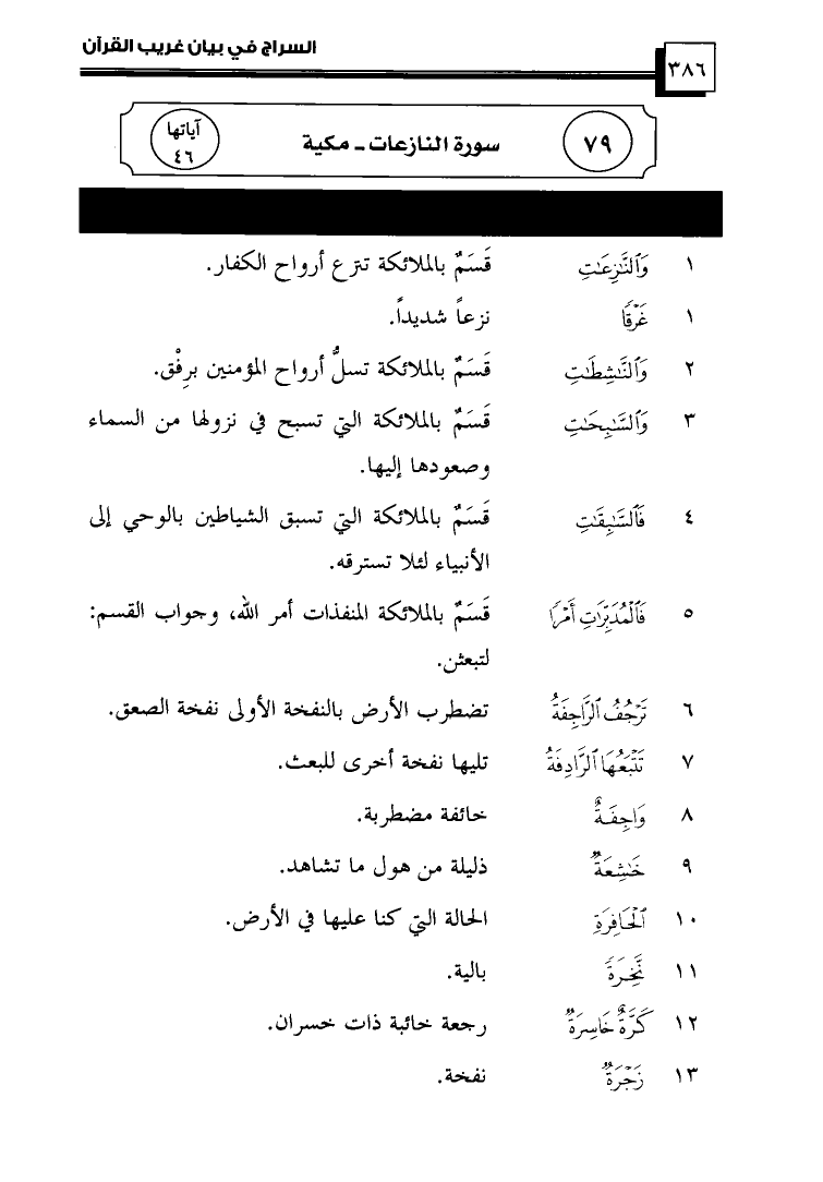(1) ... {وَالنَّازِعَاتِ} ... قَسَمٌ بِالمَلَائِكَةِ تَنْزِعُ أَرْوَاحَ الكُفَّارِ.