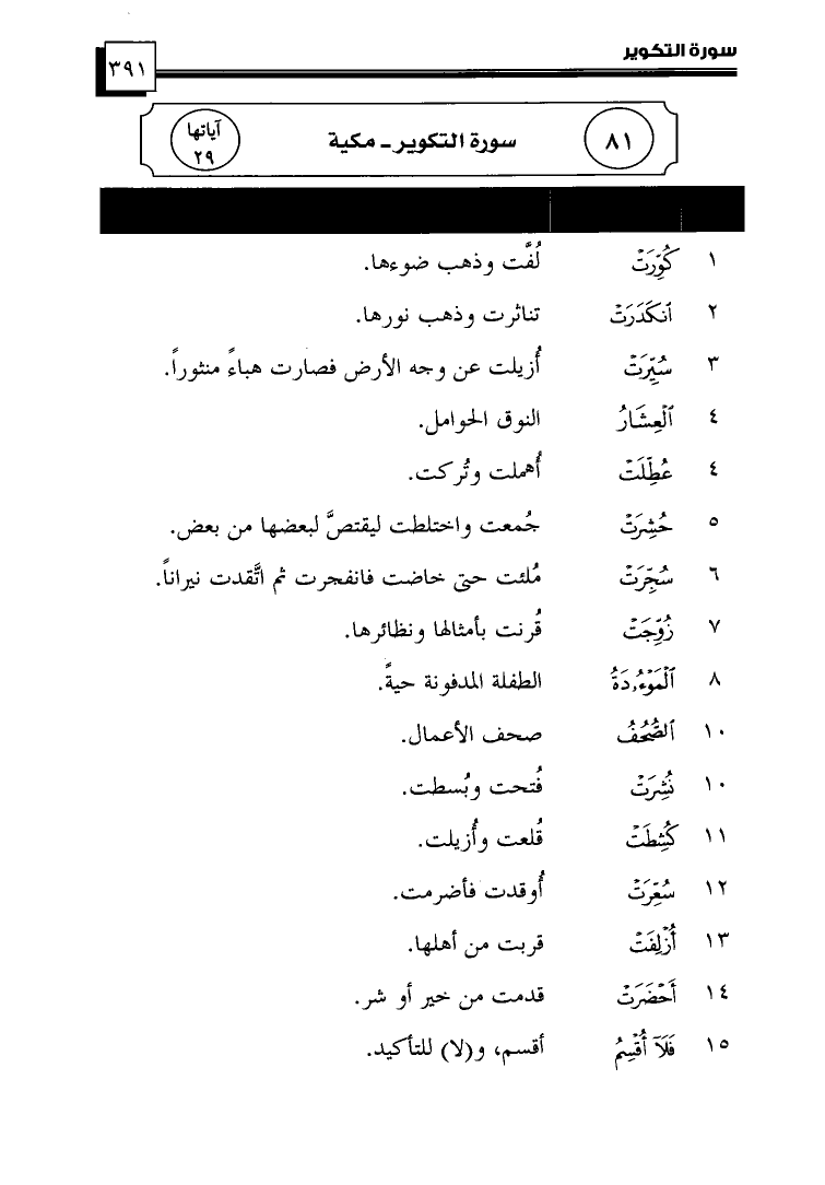 ترتيبها 81 ... سُورَةُ التَّكْوِيرِ ... آياتها 29 ... مكية