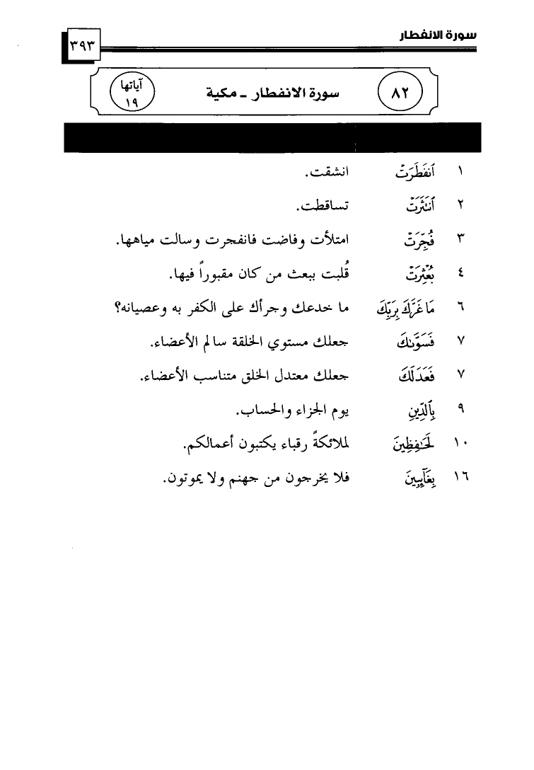 ترتيبها 82 ... سُورَةُ الِانْفَطَارِ ... آياتها 19 ... مكية