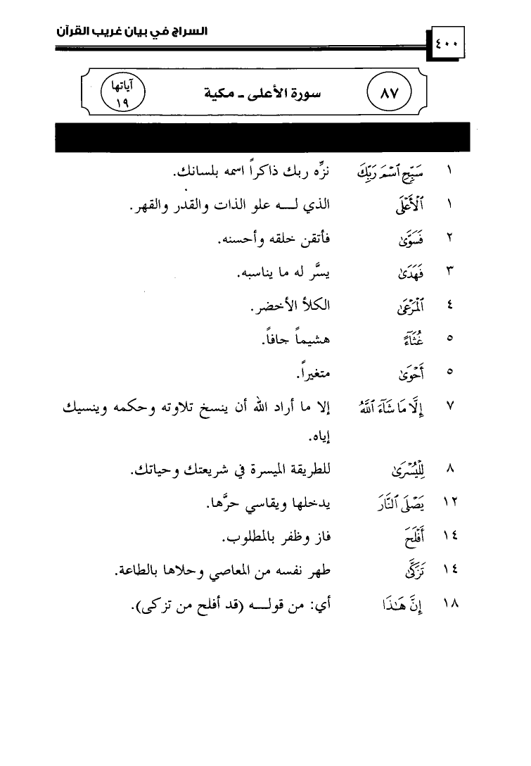 ترتيبها 87 ... سُورَةُ الْأَعْلَى ... آياتها 19 ... مكية