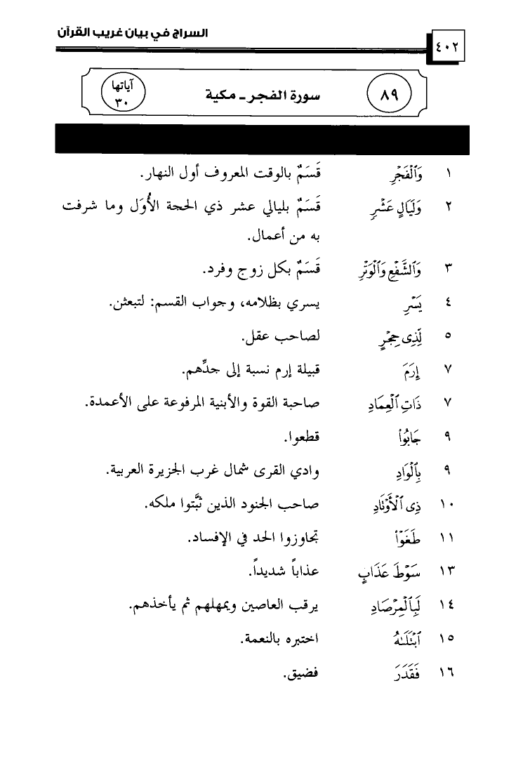 (1) ... {وَالْفَجْرِ} ... قَسَمٌ بِالوَقْتِ المَعْرُوفِ أَوَّلَ النَّهَارِ.