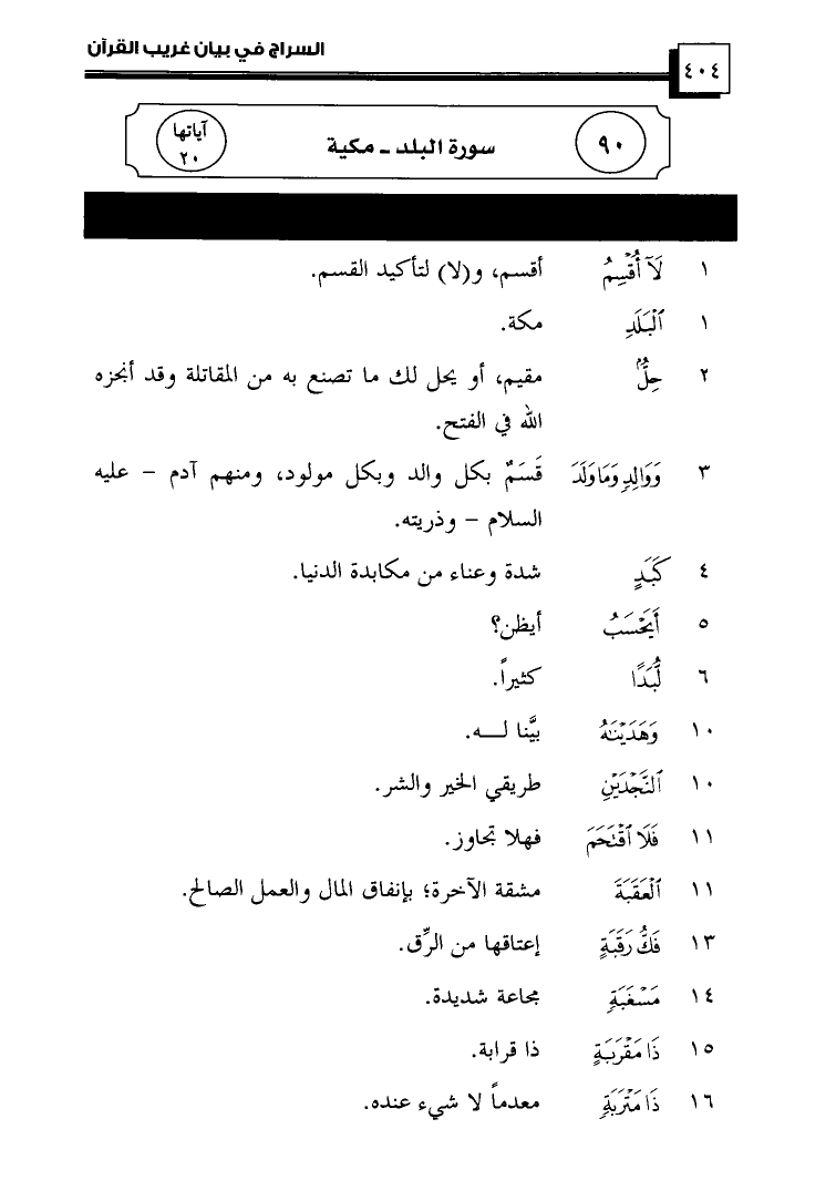 ترتيبها 90 ... سُورَةُ البَلَدِ ... آياتها 20 ... مكية