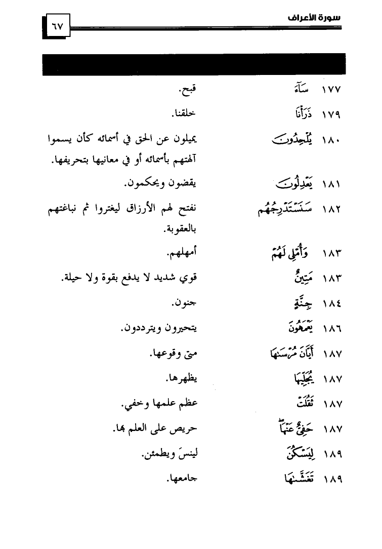 (180) ... {يُلْحِدُونَ} ... يَمِيلُونَ عَنِ الْحَقِّ فِي أَسْمَائِهِ؛ كَأَنْ يُسَمُّوا آلِهَتَهُمْ بِأَسْمَائِهِ، أَوْ فِي مَعَانِيهَا بِتَحْرِيفِهَا.