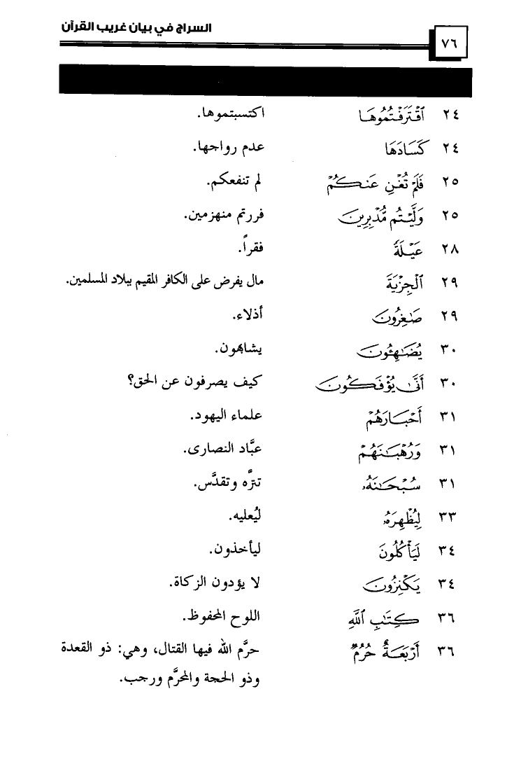 كتاب السراج في بيان غريب القرآن