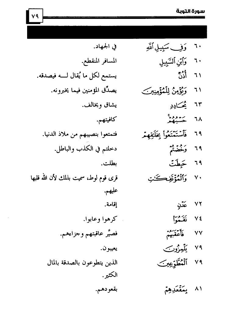 (79) ... {الْمُطَّوِّعِينَ} ... الَّذِينَ يَتَطَوَّعُونَ بِالصَّدَقَةِ بِالمَالِ الكَثِيرِ.