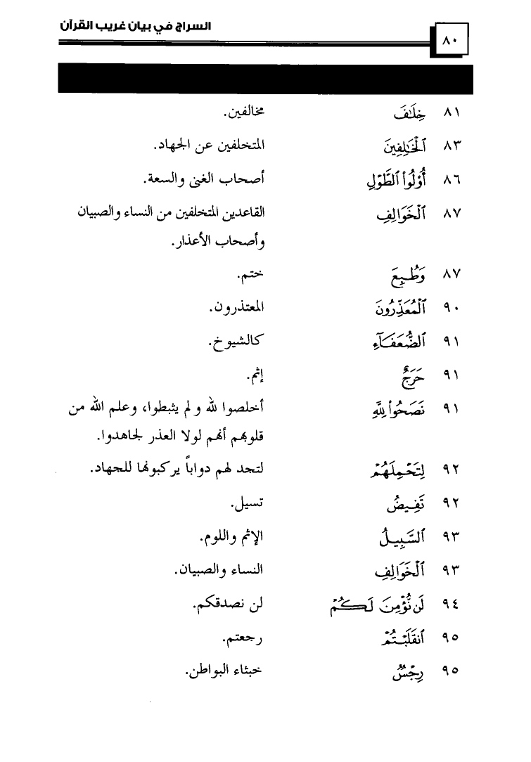 (93) ... {الْخَوَالِفِ} ... النِّسَاءِ، وَالصِّبْيَانِ.