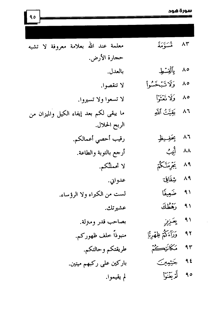 (86) ... {بَقِيَّةُ اللهِ} ... مَا يُبْقِي اللهُ لَكُمْ بَعْدَ إِيفَاءِ الكَيْلِ وَالمِيزَانِ مِنَ الرِّبْحِ الحَلَالِ.