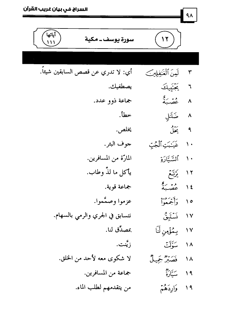 ترتيبها 12 ... سُورَةُ يُوسُفَ ... آياتها 111 ... مكية