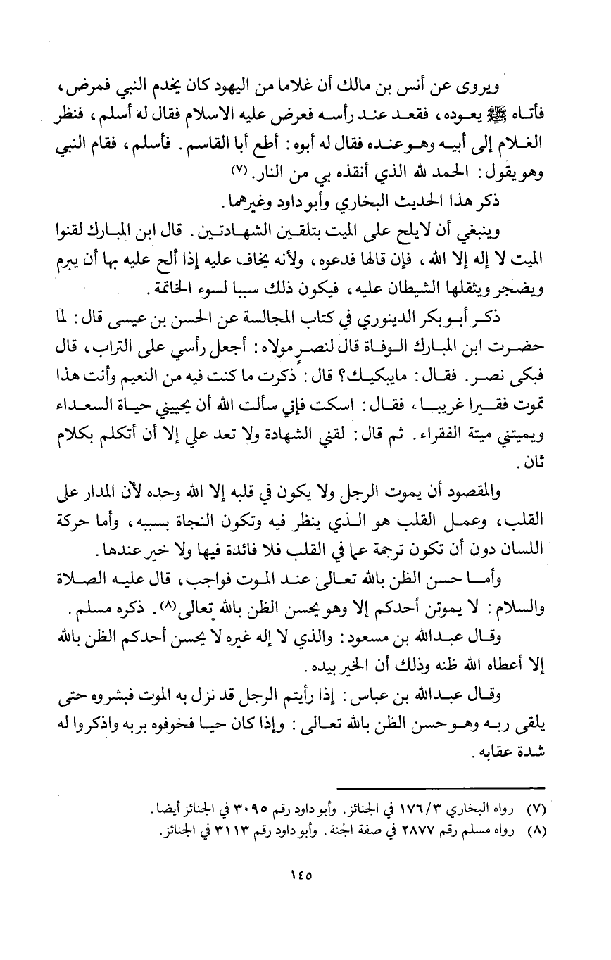 وَأما حسن الظَّن بِاللَّه تَعَالَى عِنْد الْمَوْت فَوَاجِب قَالَ عَلَيْهِ الصَّلَاة وَالسَّلَام لَا يموتن أحدكُم إِلَّا وَهُوَ يحسن الظَّن بِاللَّه تَعَالَى ذكره مُسلم