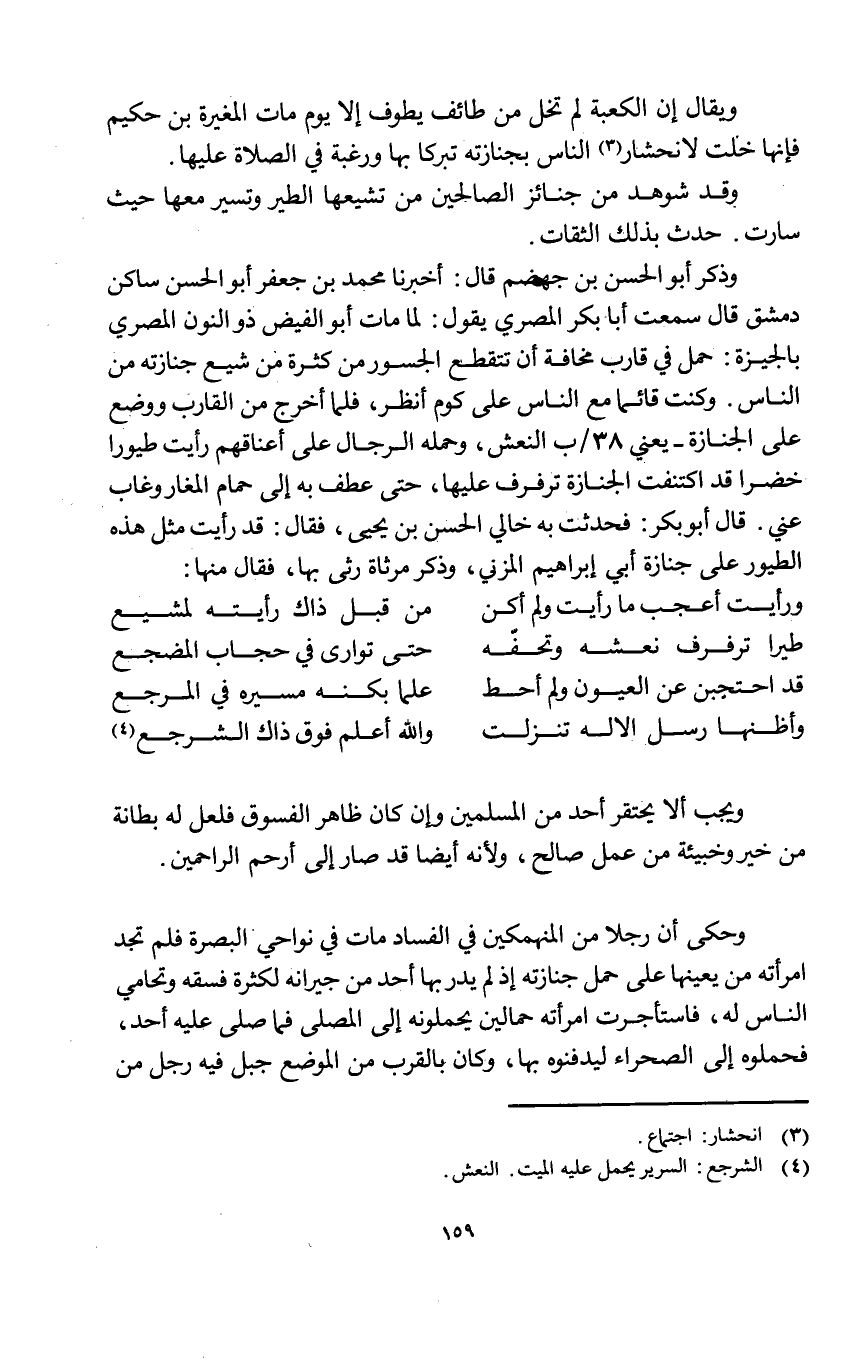 وَقد شوهد من جنائز الصَّالِحين من تشيعها الطير وتسير مَعهَا حَيْثُ سَارَتْ حدث بذلك الثِّقَات