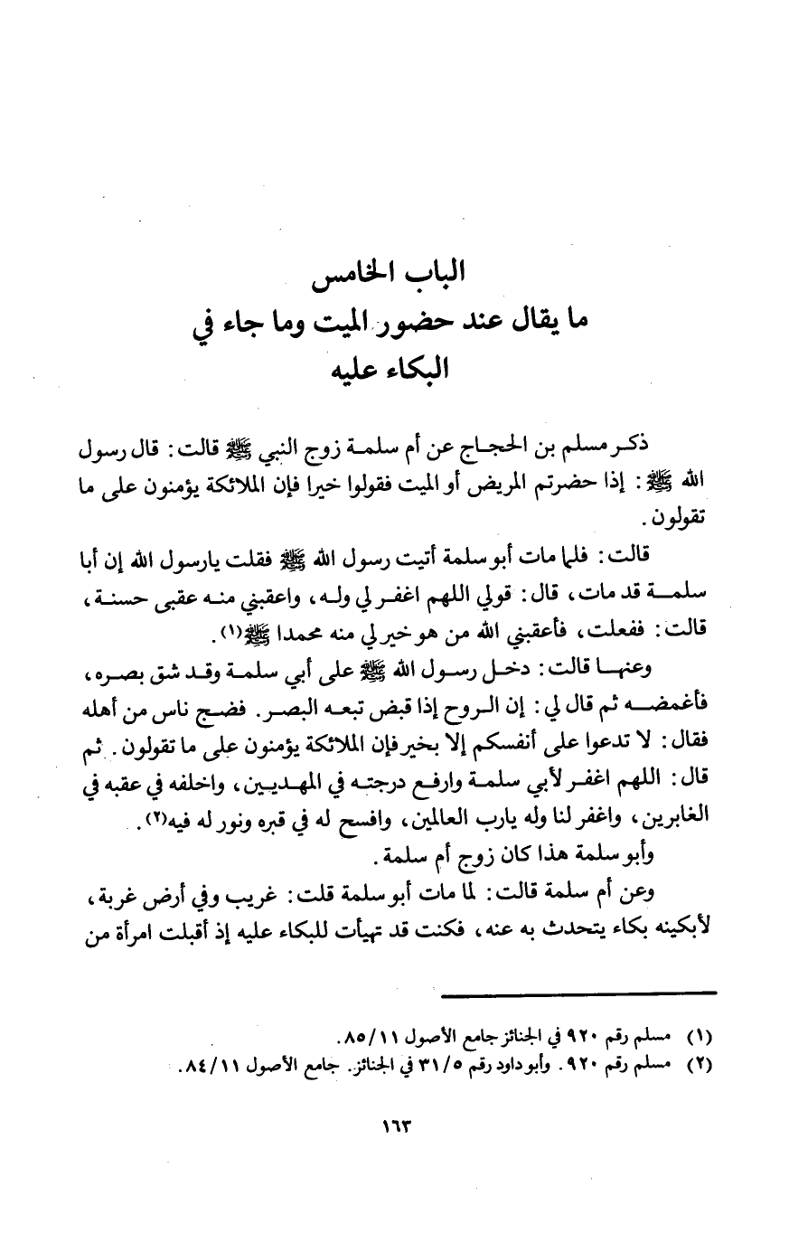 الْبَاب الْخَامِس مَا يُقَال عِنْد حُضُور الْمَيِّت وَمَا جَاءَ فِي الْبكاء عَلَيْهِ