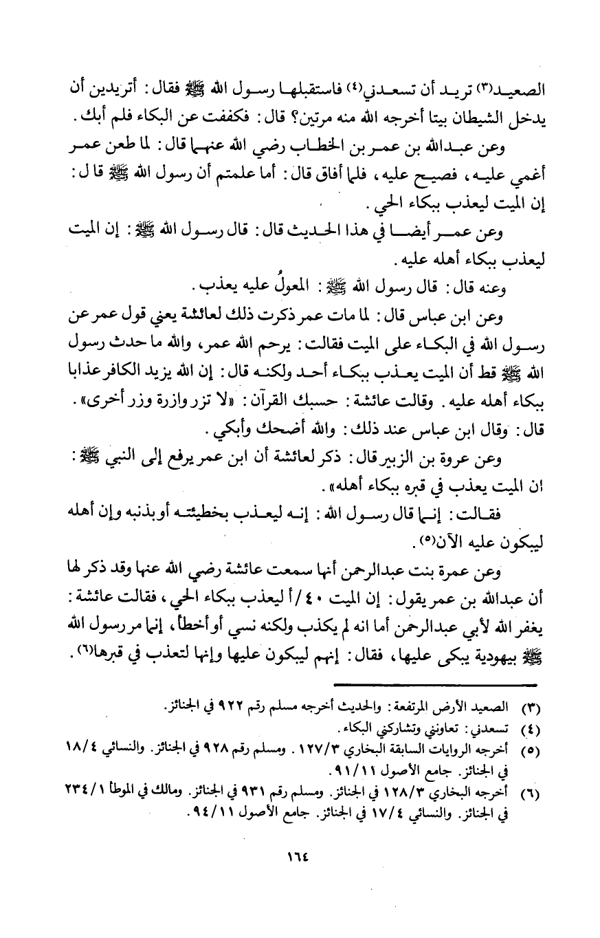 وَعَن ابْن عَبَّاس قَالَ لما مَاتَ عمر ذكرت ذَلِك لعَائِشَة يَعْنِي قَول عمر عَن رَسُول الله فِي الْبكاء على الْمَيِّت فَقَالَت يرحم الله عمر وَالله مَا حدث رَسُول الله صلى الله عَلَيْهِ وَسلم قطّ أَن الْمَيِّت يعب ببكاء أحد وَلكنه قَالَ إِن الله يزِيد الْكَافِر عذَابا ببكاء أَهله عَلَيْهِ وَقَالَت عَائِشَة حَسبك الْقُرْآن لَا تزر وَازِرَة وزر أُخْرَى قَالَ وَقَالَ ابْن عَبَّاس عِنْد ذَلِك وَالله أضْحك وأبكي