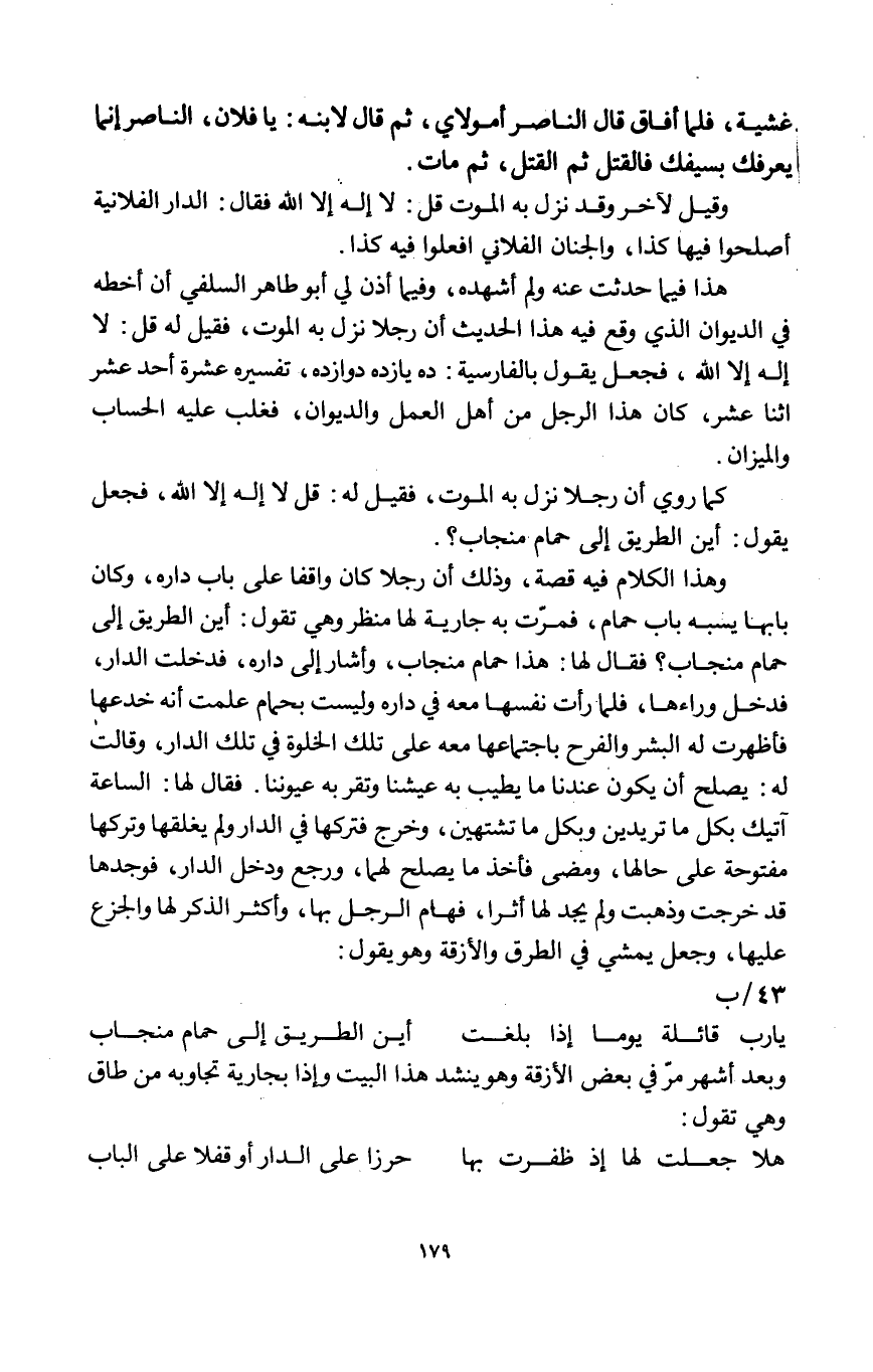 يَا رب قائلة يَوْمًا إِذا بلغت ... أَيْن الطَّرِيق إِلَى حمام منْجَاب