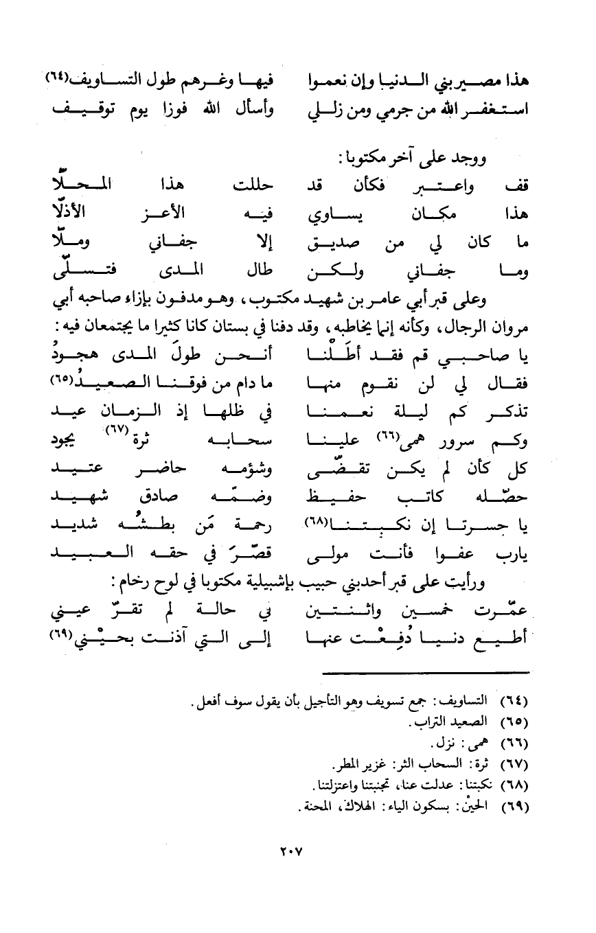 وَرَأَيْت على قبر أحد بني حبيب بإشبيلية مَكْتُوبًا فِي لوح رُخَام