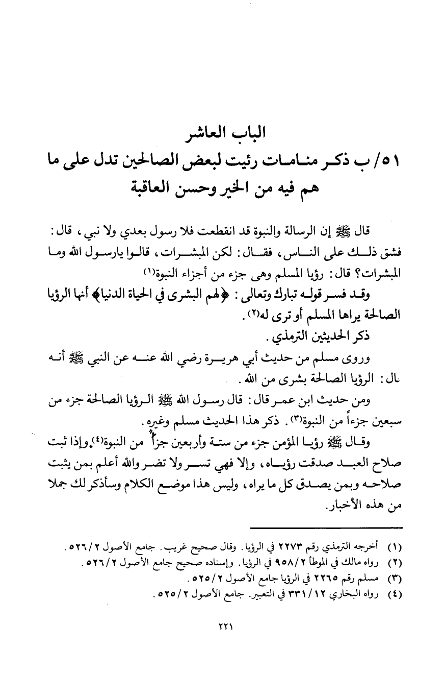 الْبَاب الْعَاشِر ذكر منامات رئيت لبَعض الصَّالِحين تدل على مَا هم فِيهِ من الْخَيْر وَحسن الْعَاقِبَة