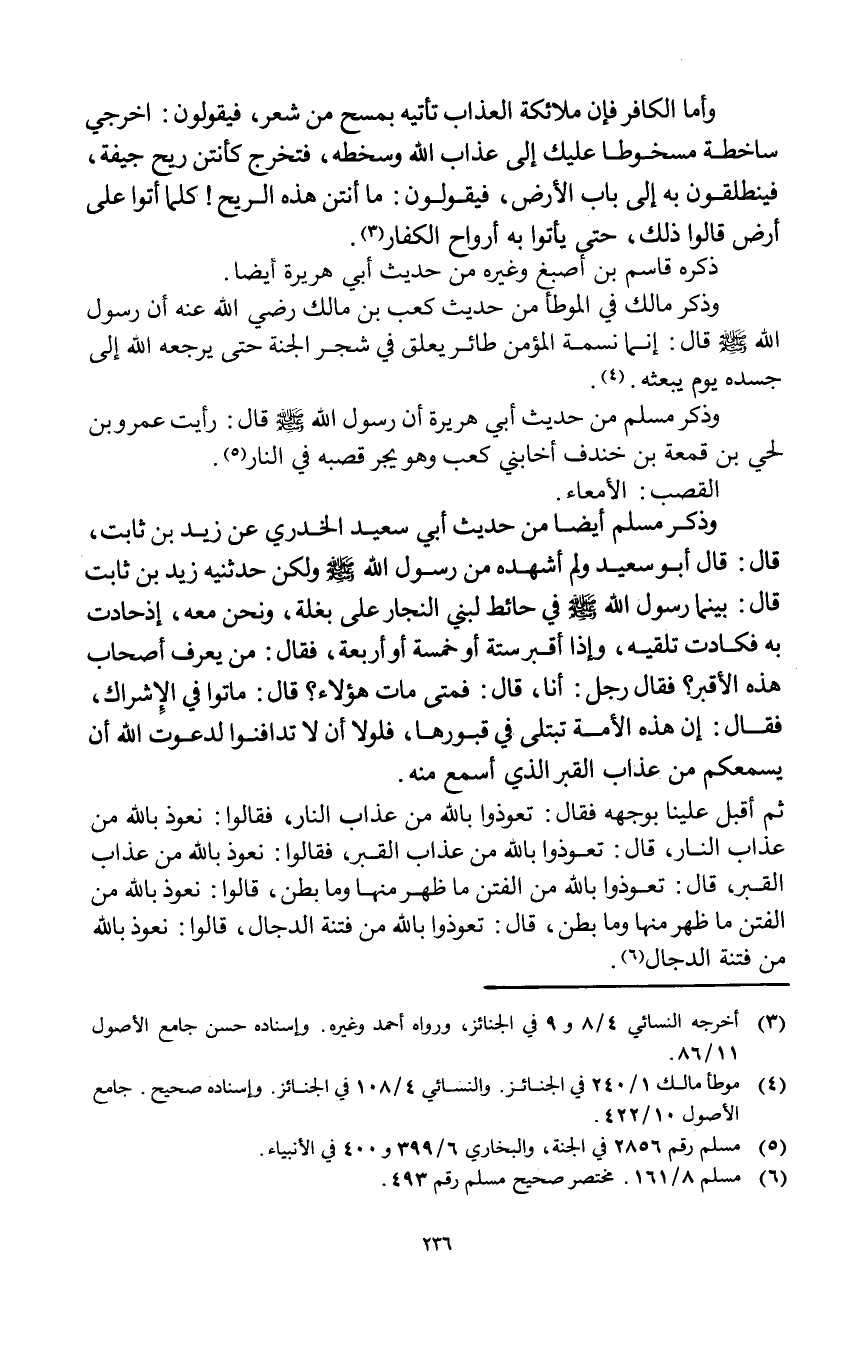 وَذكر مَالك فِي الْمُوَطَّأ من حَدِيث كَعْب بن مَالك رَضِي الله عَنهُ أَن رَسُول الله صلى الله عَلَيْهِ وَسلم قَالَ إِنَّمَا نسمَة الْمُؤمن طَائِر يعلق فِي شجر الْجنَّة حَتَّى يرجعه الله إِلَى جسده يَوْم يَبْعَثهُ