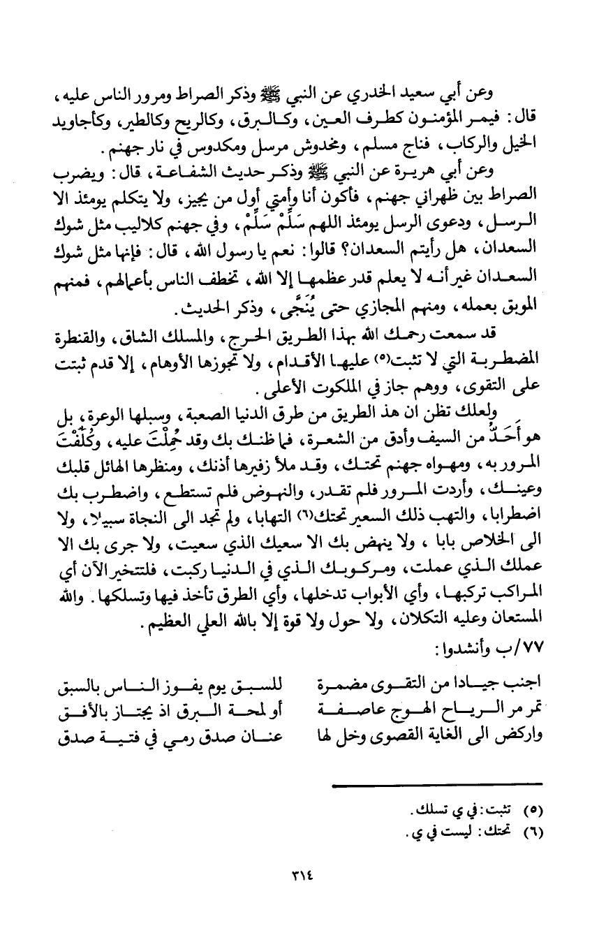 قد سمع رَحِمك الله بِهَذَا الطَّرِيق الْحَرج والمسلك الشاق والقنطرة المضطربة الَّتِي لَا تثبت عَلَيْهَا الْأَقْدَام وَلَا تجوزها الأوهام إِلَّا قدم ثبتَتْ على التَّقْوَى وَوهم جَازَ فِي الملكوت الْأَعْلَى