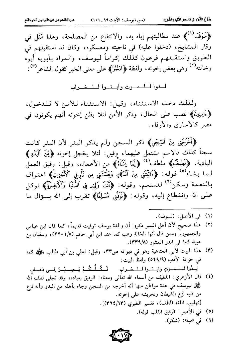 كتاب درج الدرر في تفسير الآي والسور ط الحكمة (اسم الجزء: 3)