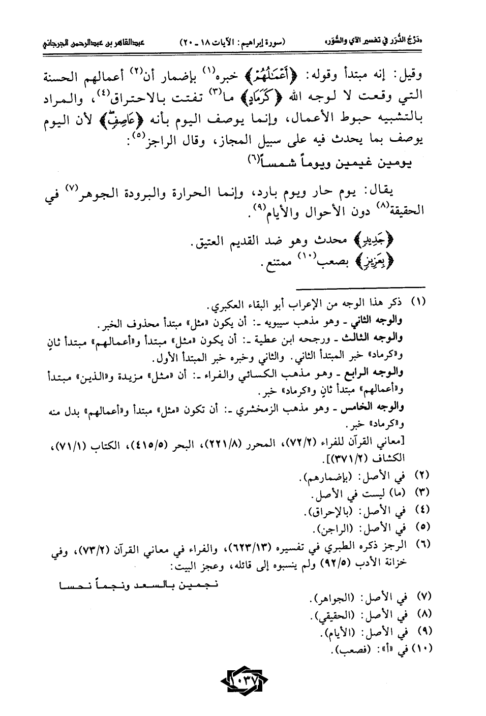 (¬6) الرجز ذكره الطبري في تفسيره (13/ 623)، والفراء في معاني القرآن (2/ 73)، وفي خزانة الأدب (5/ 92) ولم ينسبوه إلى قائله، وعجز البيت: