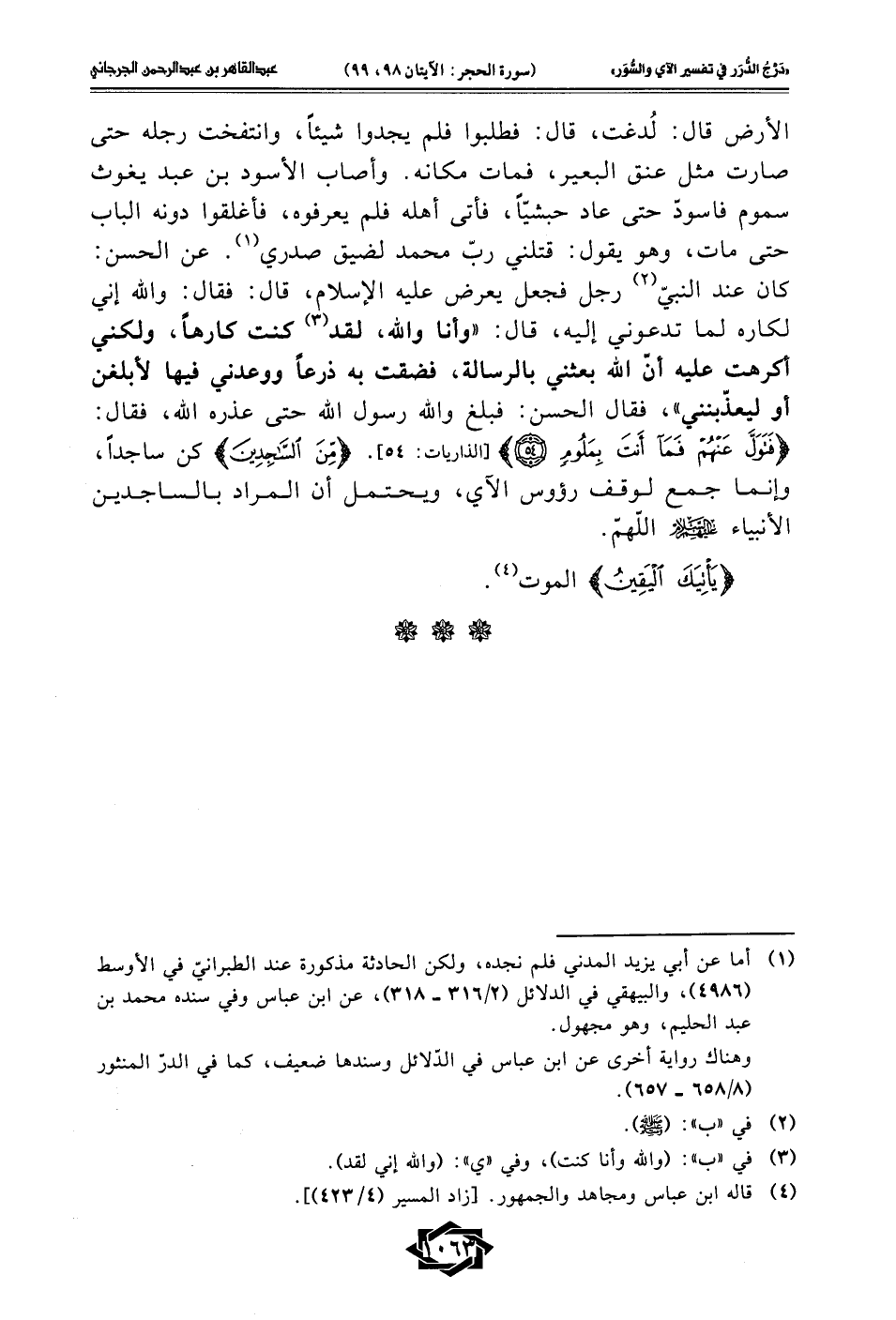 وهناك رواية أخرى عن ابن عباس في الدّلائل وسندها ضعيف، كما في الدرّ المنثور (8/ 658 - 657).