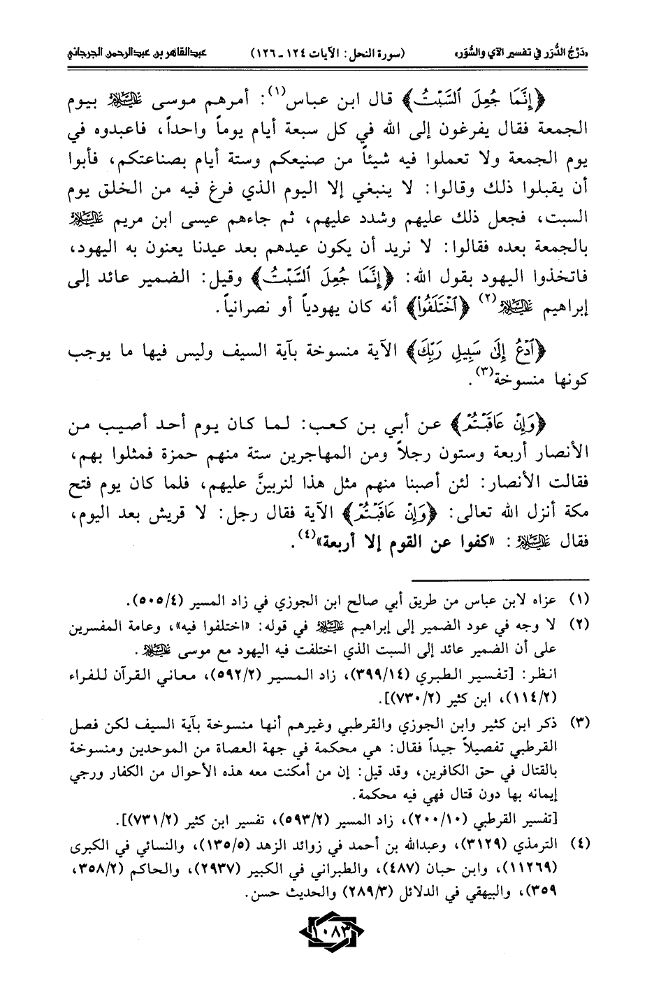 {ادْعُ إِلَى سَبِيلِ رَبِّكَ} الآية منسوخة بآية السيف وليس فيها ما يوجب كونها منسوخة (¬3).