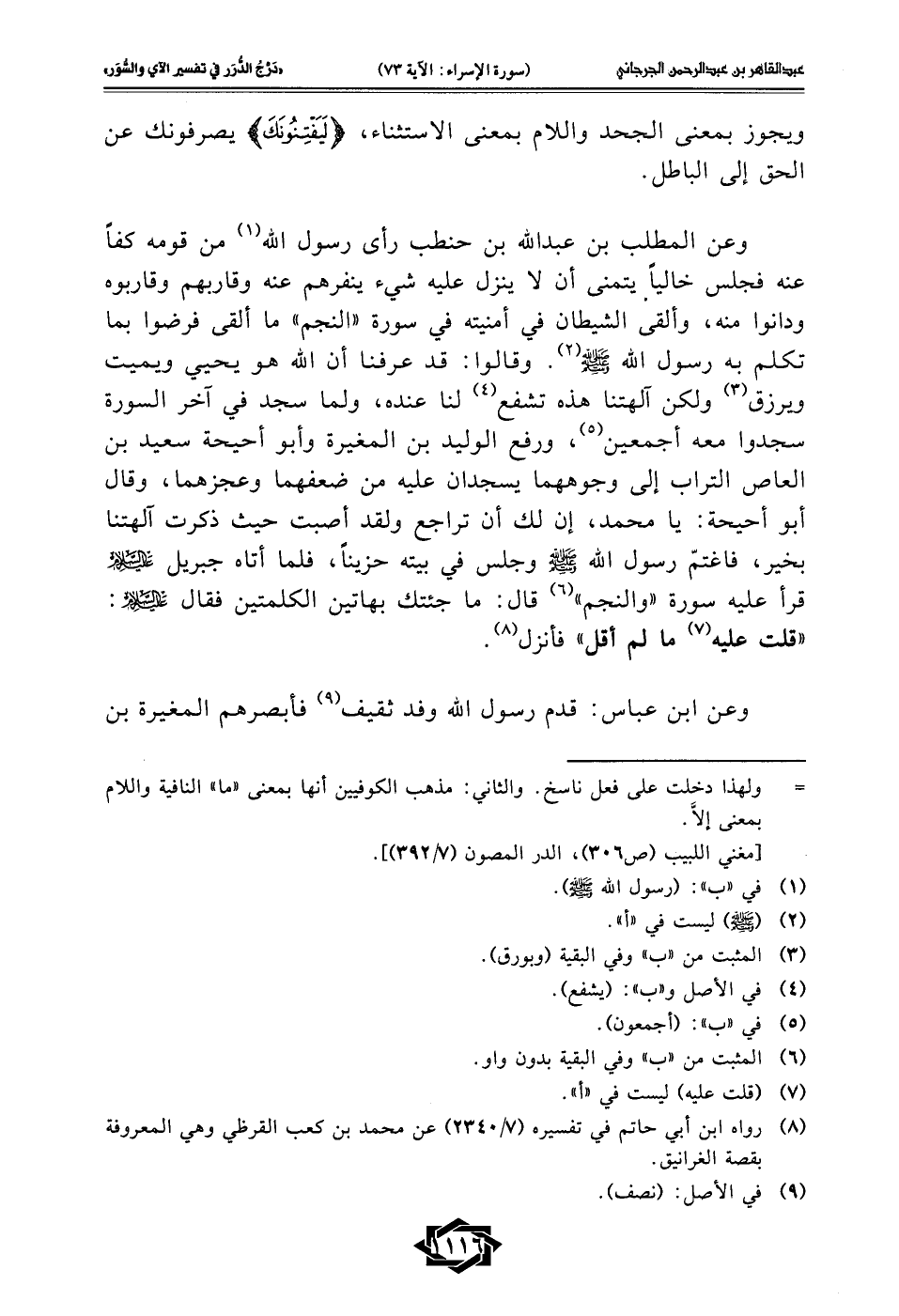 (¬8) رواه ابن أبي حاتم في تفسيره (7/ 2340) عن محمَّد بن كعب القرظي وهي المعروفة بقصة الغرانيق.